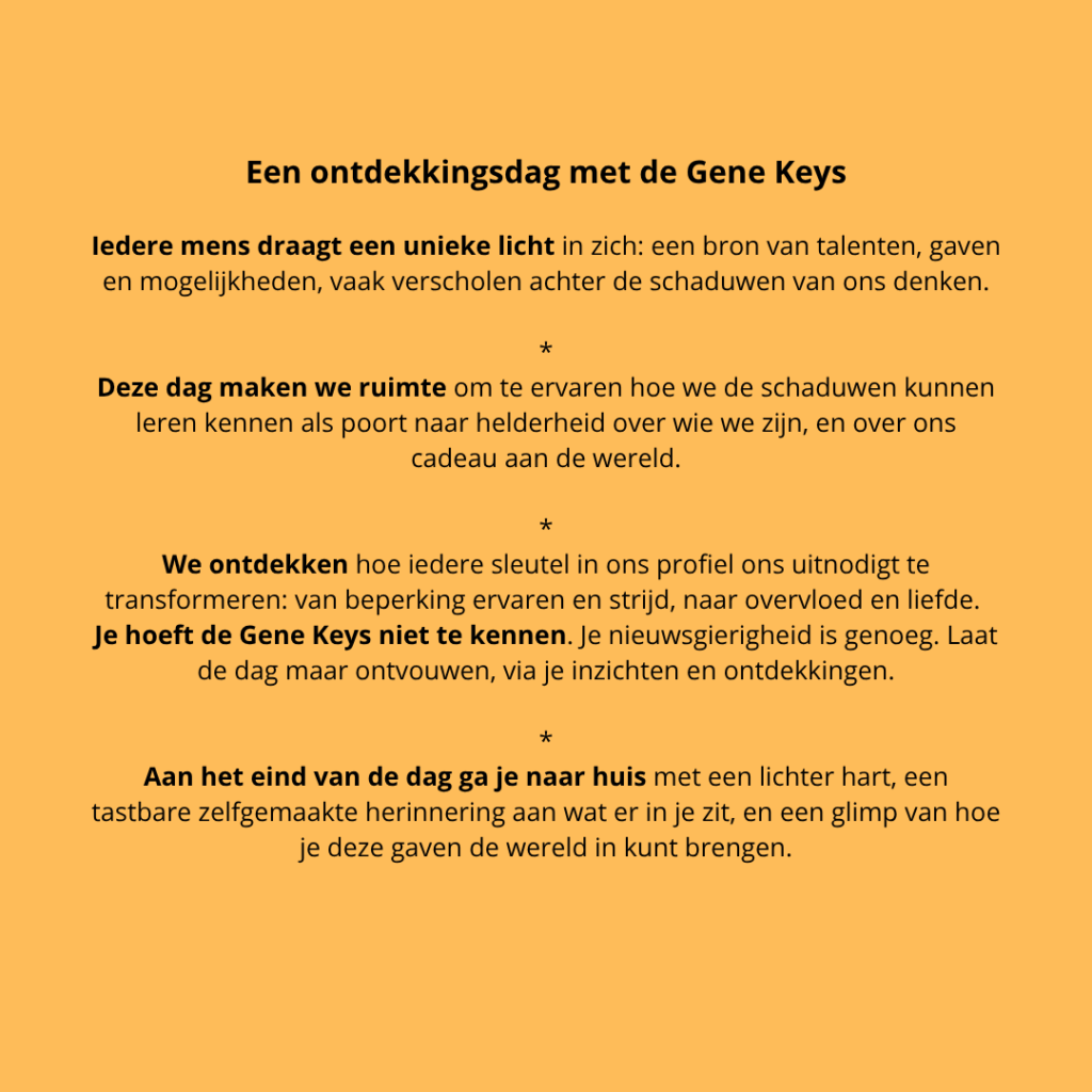 - Gene Keys Activatie – reis, startdatum bepalen we samen met elkaar (nog 3 plaatsen).